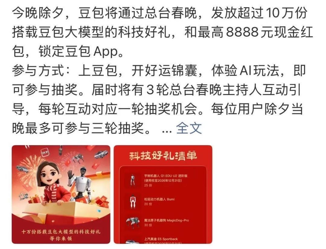 春晚上豆包的新春红包活动,你参与了吗?