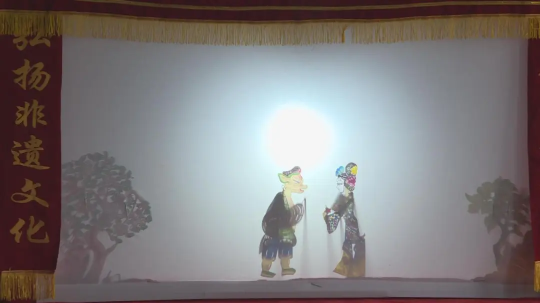 幕布后灯影晃动,《猪八戒背媳妇》的皮影戏正精彩上演;幕布前孩子们目不转睛,时不时发出惊喜的叫声和欢快的笑声。