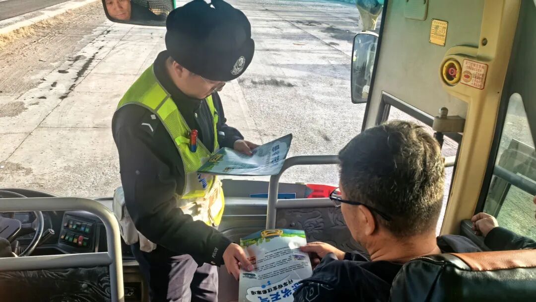 宣传教育结合,增强安全意识:“师傅,复工返岗途中人员较多,务必提醒大家全程系好安全带,避免疲劳驾驶。”在检查过程中,执勤民警充当“安全宣传员”,向通勤车驾驶员和随车员工发放交通安全宣传资料,并结合近期典型交通事故案例,面对面讲解超速、超员、分心驾驶等行为的危害。同时,督促企业落实安全主体责任,加强通勤车辆日常维护和驾驶人安全教育,从源头消除安全隐患,确保每一次通勤都安全顺利。