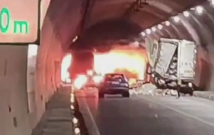 原标题:《惊险!高速隧道内一货车突发自燃!》