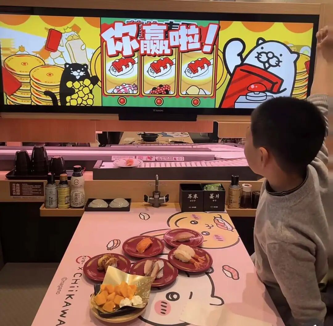情绪价值同样关键,消费者不再仅看价格,更追求新鲜有趣的体验。部分寿司郎门店引入1.5米点单大屏,既是点餐工具也是“娱乐中心”,围绕大屏的点餐、抽奖、游戏环节,将点菜变成互动游戏,年轻消费者和家庭客群可在等餐或用餐时参与,获得即时反馈与惊喜。限时高性价比产品带来“开盲盒”乐趣,消费参与扭蛋抽奖的不确定性与中奖满足感,丰富了用餐情绪层次。