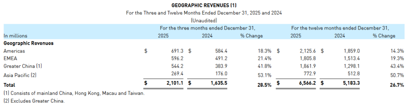 该季度,亚玛芬全球各市场均实现增长。其中,美洲市场收入同比增长18.3%,达6.91亿美元(约合人民币47.27亿元);欧洲、中东和非洲市场增长21.4%,至5.96亿美元(约合人民币40.77亿元);大中华区市场收入大涨41.8%,达5.44亿美元(约合人民币37.22亿元);除中国外的亚太市场大涨53.1%,至2.69亿美元(约合人民币18.40亿元)。