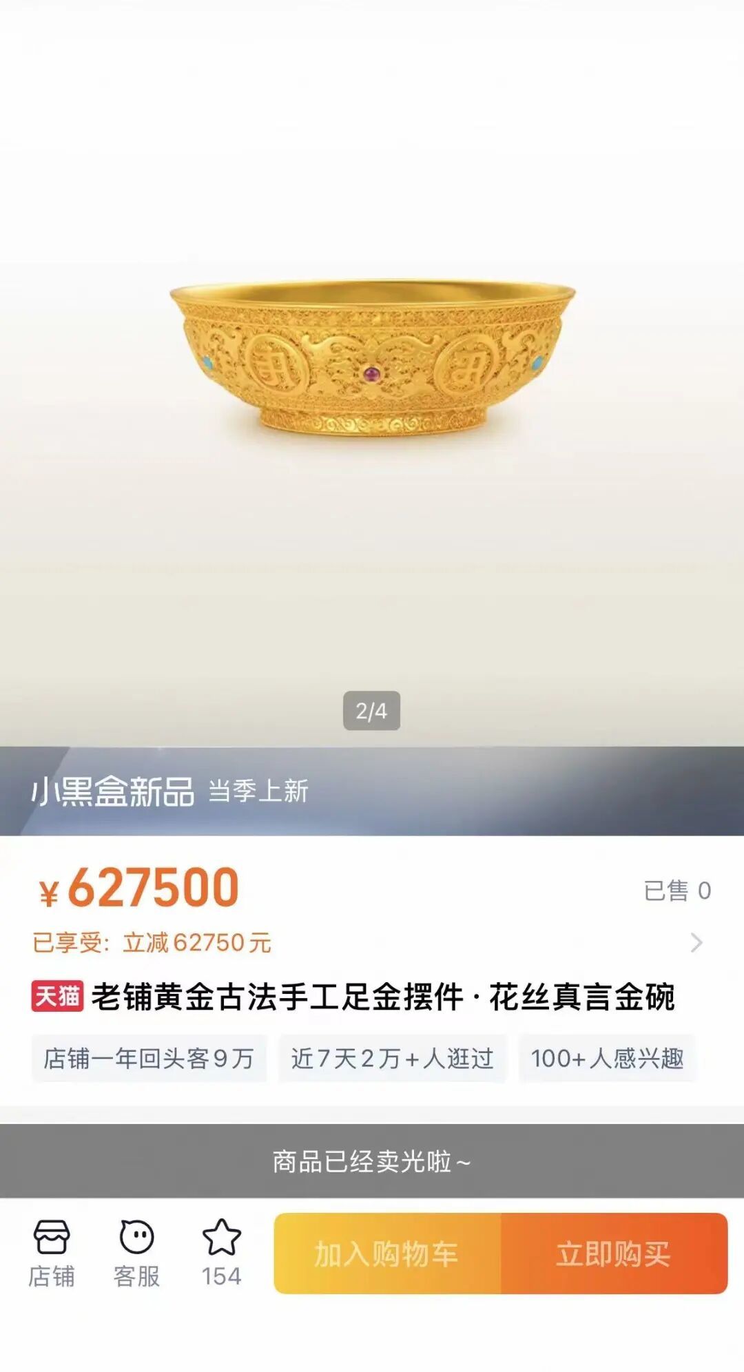 老铺黄金60万高价金碗线上促销十分钟售罄 提价前多地门店现排队潮