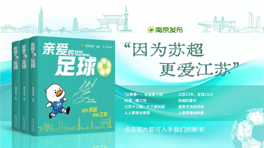 南京发布推出的《亲爱的足球》已正式上架,全书共十个章节,完整记录了南京参与“苏超”的全过程。希望这本书能留存记忆,给予读者开创崭新篇章的勇气。