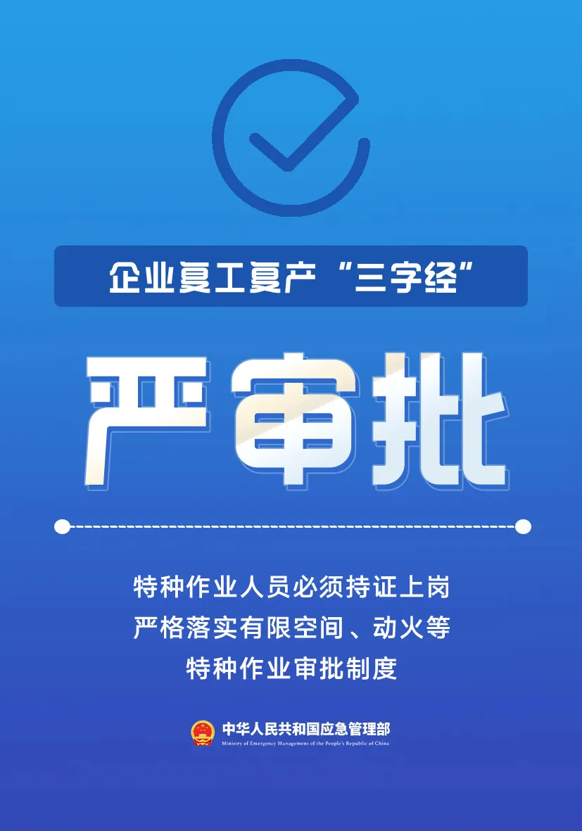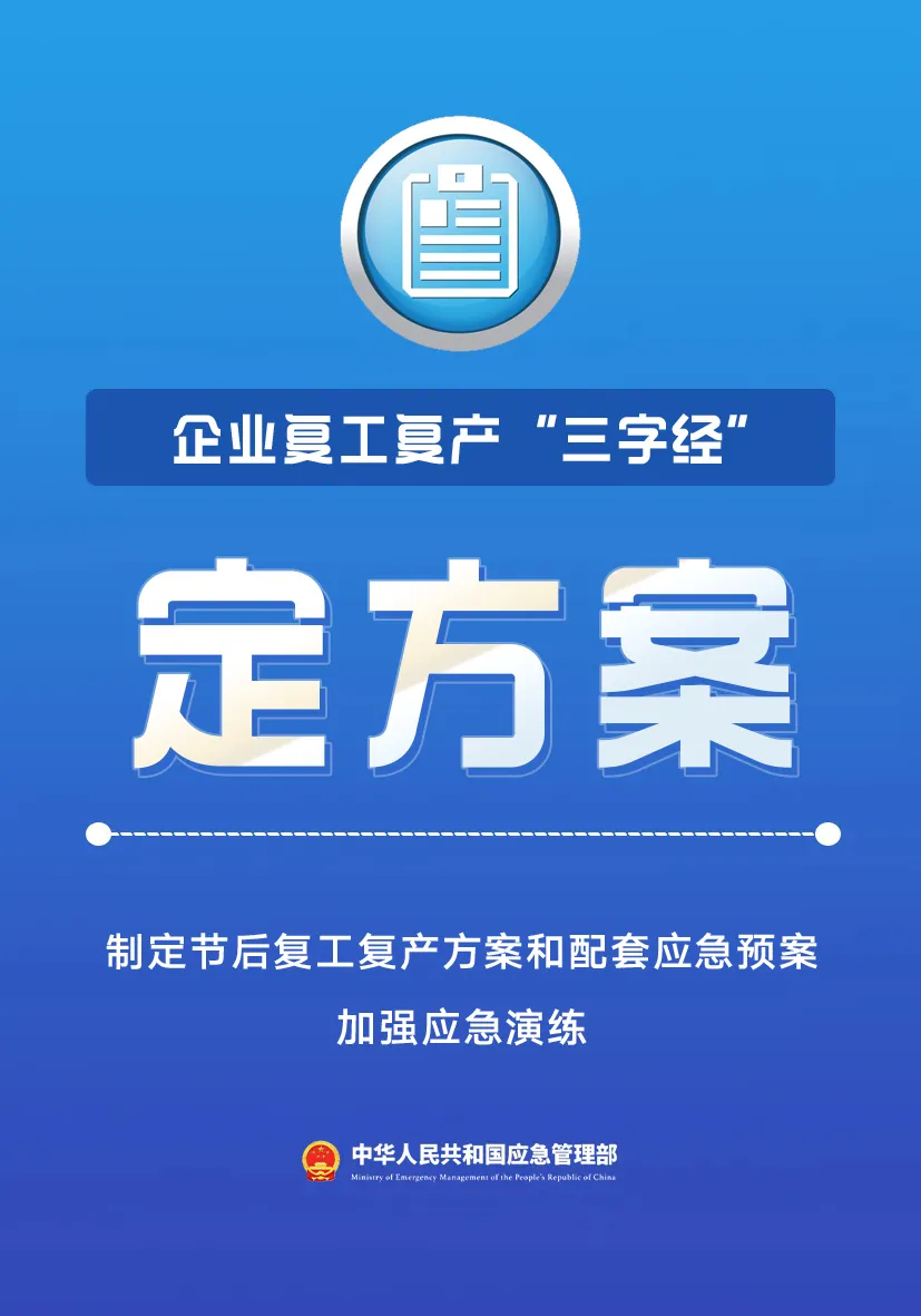 企业在复工复产过程中,员工心态调整、设备重新运作以及可能遇到的恶劣天气等因素,都可能引发安全问题,因此安全防范绝不能掉以轻心。企业应结合自身实际情况,制定有效的安全防范措施,切实落实节后安全复工复产工作。下面为大家介绍企业复工复产的“三字经”: