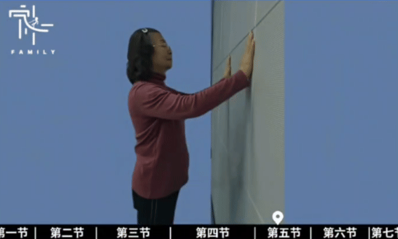 面对墙壁站立,双脚与肩同宽;双手放在墙面,宽度与肩同或略宽,弯曲肘部使身体缓慢靠近墙面,再推开墙面伸直手臂,重复15次,每次5组。