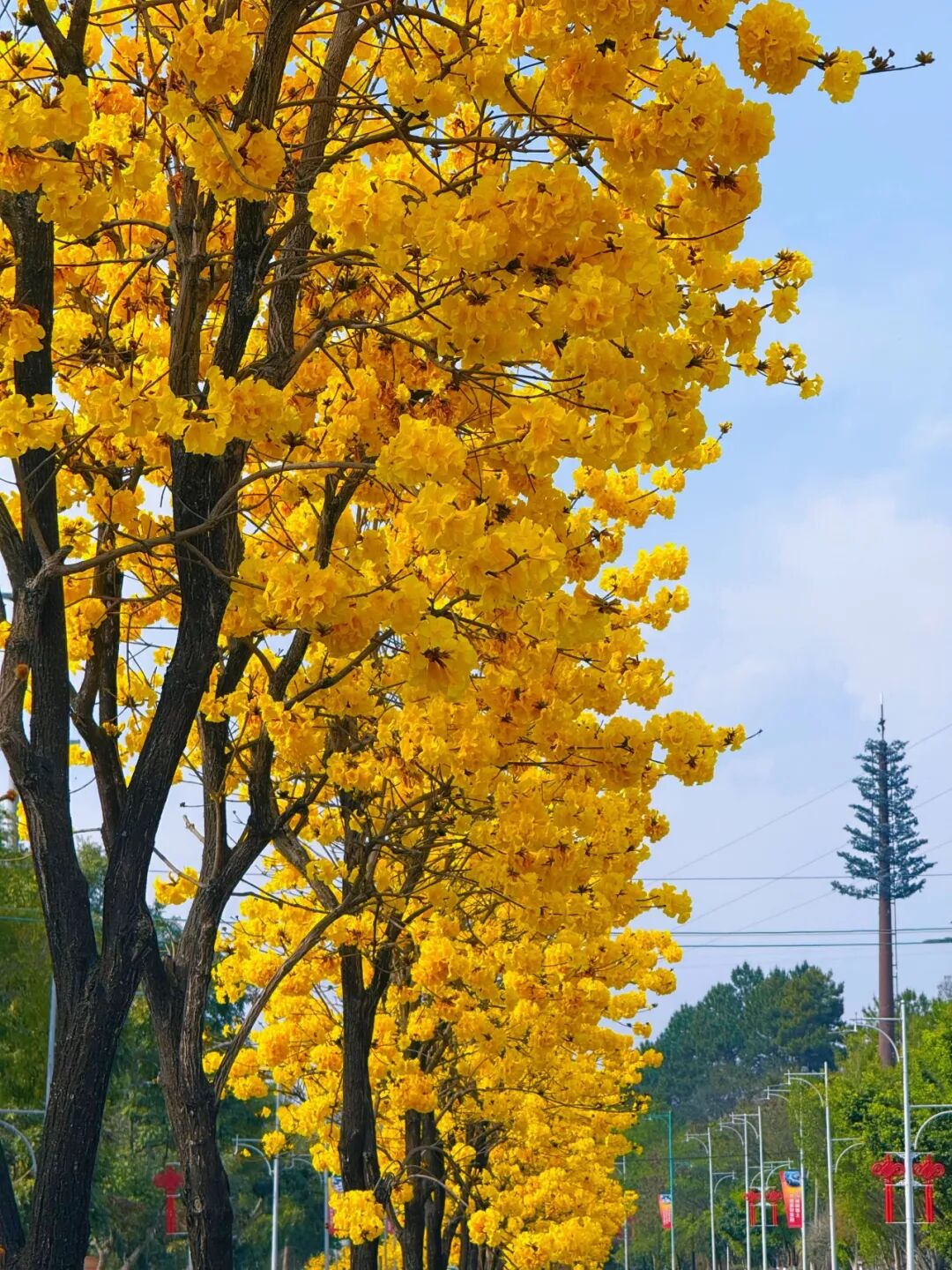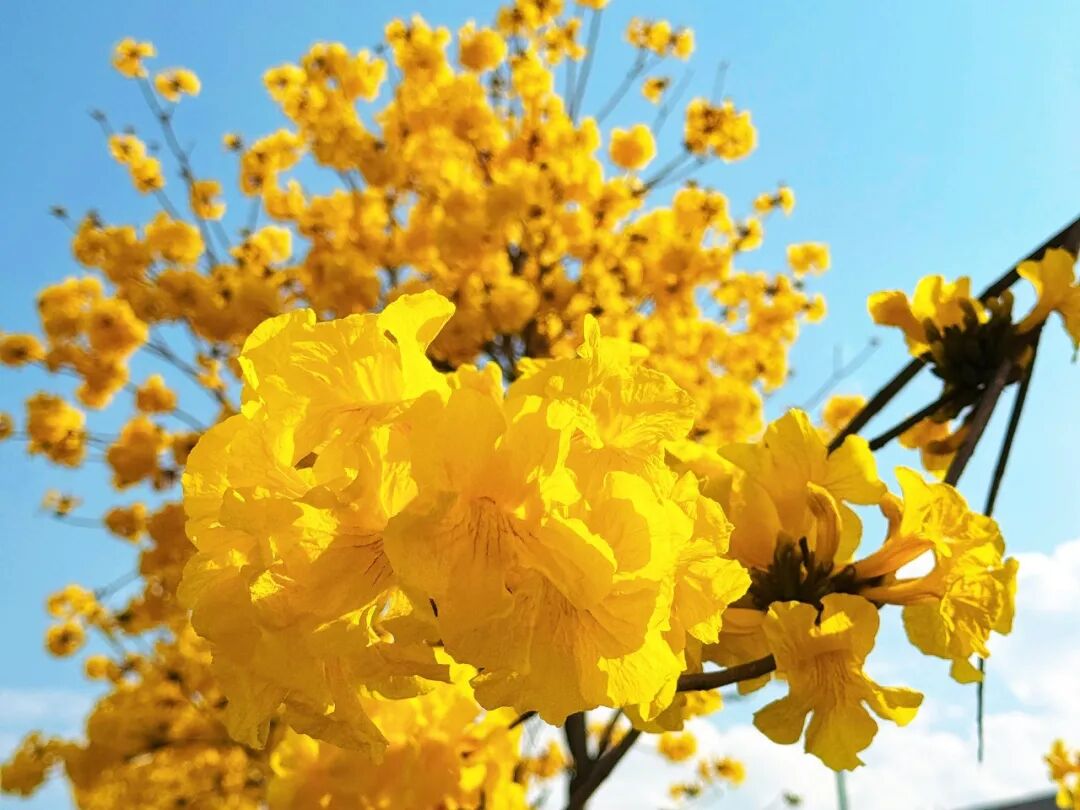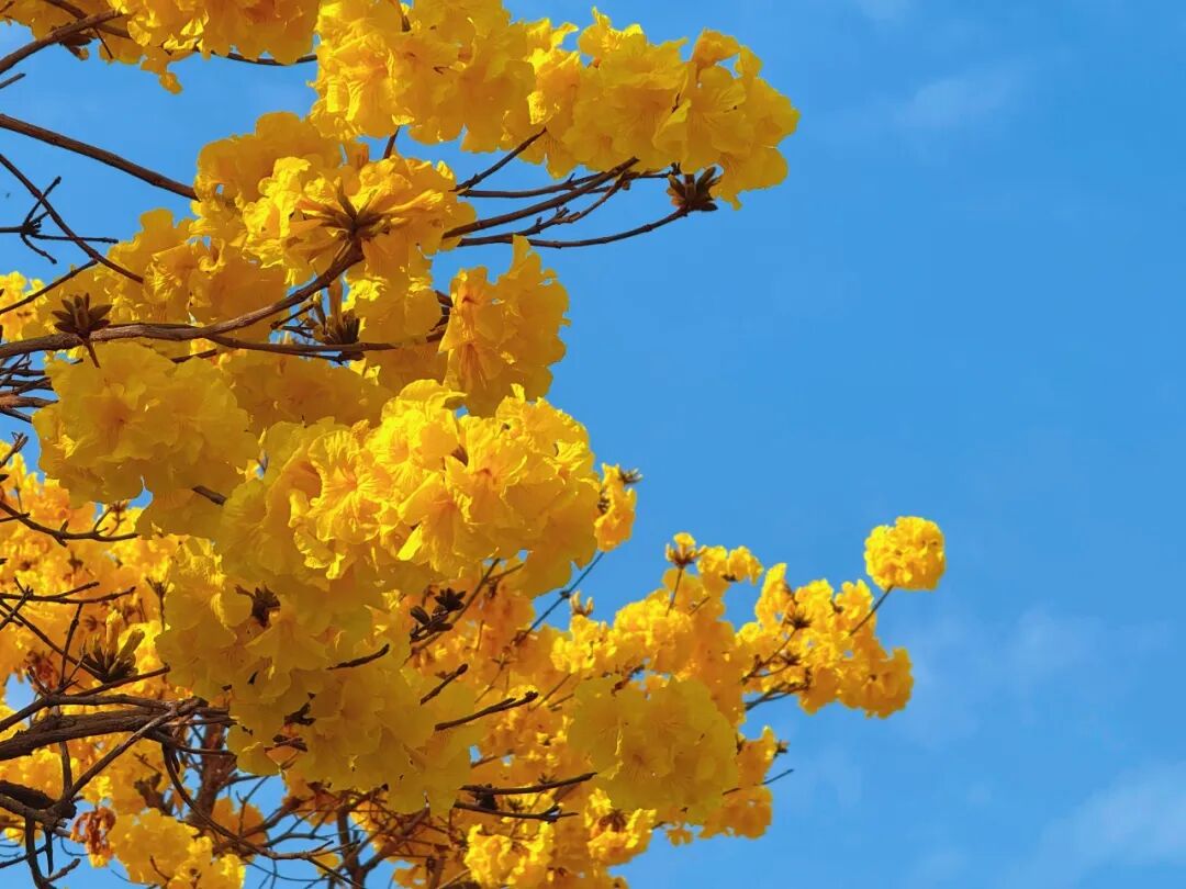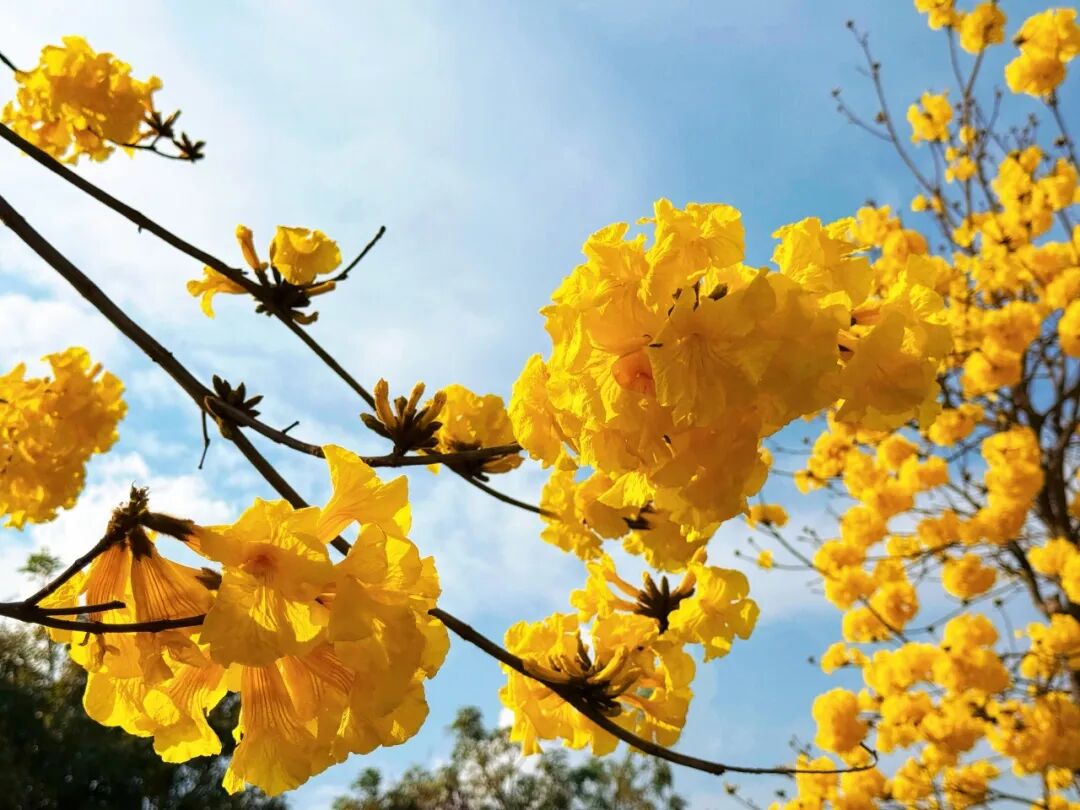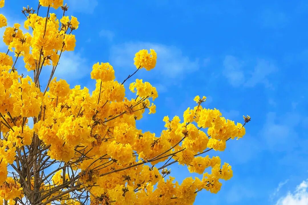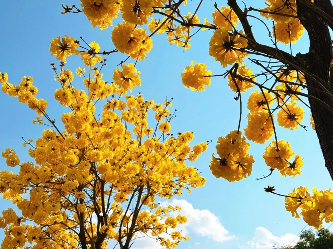 一簇簇黄花风铃木如约绽放