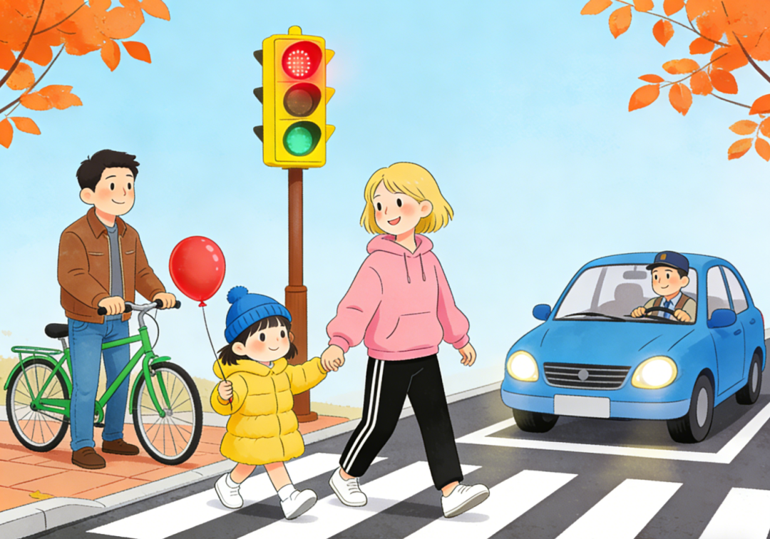 会避险:全程走人行横道、过街天桥或地下通道,坚决不闯红灯、不横穿绿化带;行走时集中注意力,不低头看手机,时刻留意来往车辆;雨雪天穿防滑鞋,尽量靠路边慢行;未成年人外出需由家长陪同,不独自前往偏僻区域,不搭乘陌生人车辆。