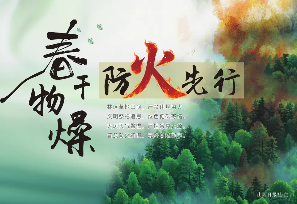 消防部门提醒,春季防火迫在眉睫,公众要自觉遵守防火规定,不带火种进山、不在野外生火野炊、不乱扔烟头、不违规用火,共同守护生态安全和群众的生命财产安全。