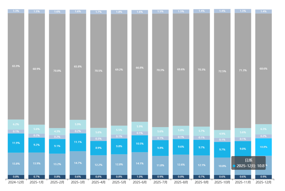 广汽丰田与东风日产的行动背后,是丰田和日产面对中国市场变化的焦虑。2025年,日系品牌在中国市场的市占率已下滑至10%以内,连续四年下降,较最高点24%的市占率大幅缩水。