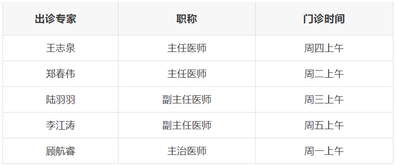 出诊安排(请以当日实际出诊情况为准):