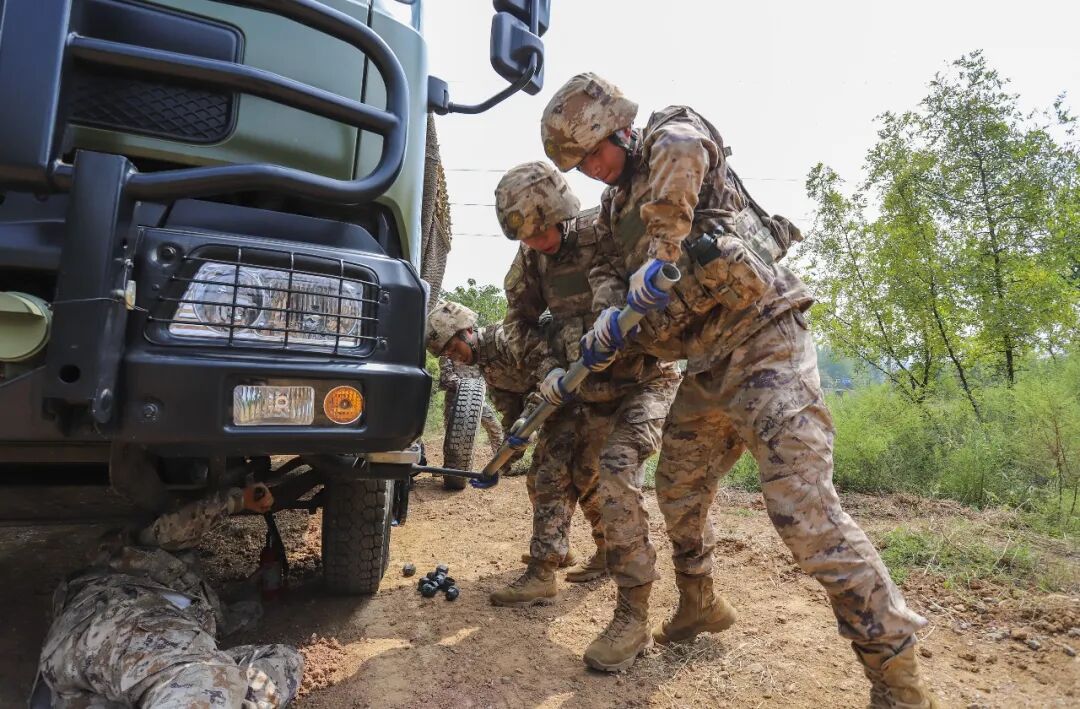 “第三辆运输车爆胎,迅速处置……”行进途中,陶营长胸前的对讲机再次传来特情通报。