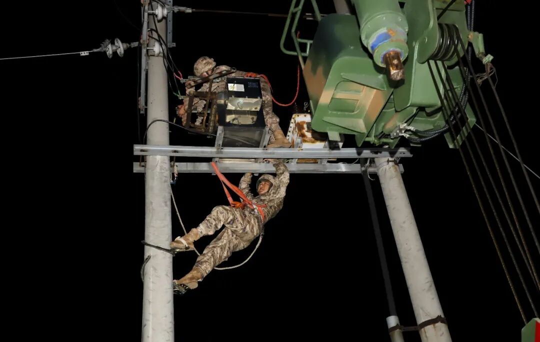 在某抢修点,该营白教导员带领技术骨干集中攻关某设备就位安装难题,通过创新方案,成功破解作业空间狭小、工序交叉等困境,顺利完成安装任务。