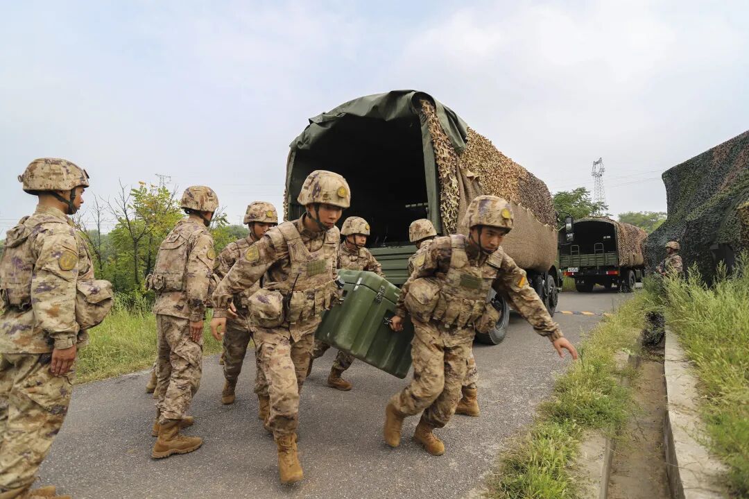 距离营区大门数十米时,两支队伍正有条不紊地进行物资装载作业。