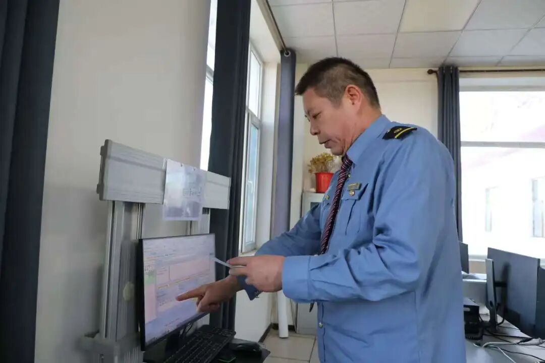天还未完全放亮,51岁的车站值班员赵磊便开启了忙碌的一天。他端坐在电脑显示屏前,紧盯着控制台站场股道的占用情况以及不停闪烁的信号灯光,指尖轻触鼠标,与过往列车司机实时联控。
