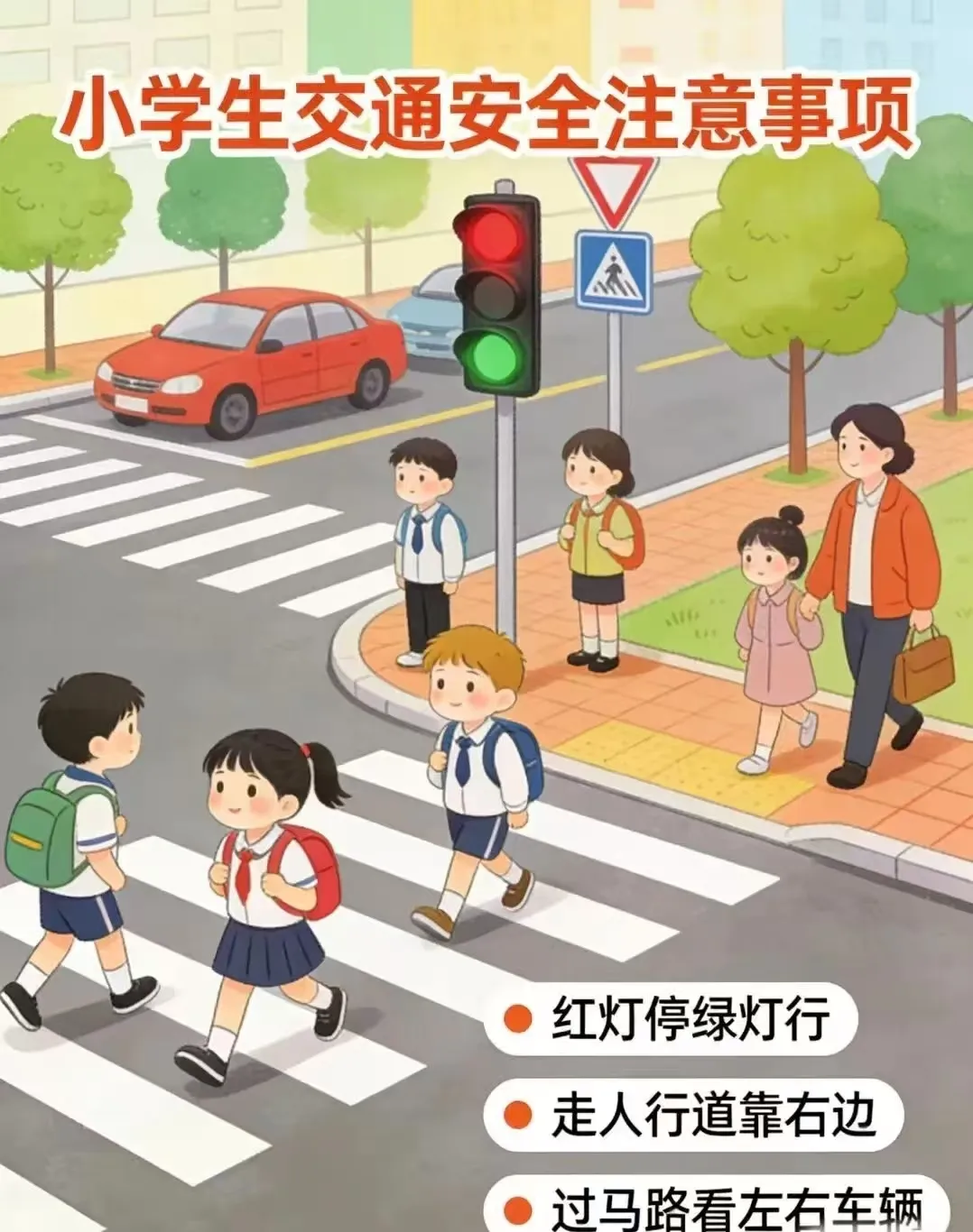步行时需集中注意力,切勿在道路上追逐嬉戏,更不能做“低头族”;过马路务必走人行横道,严格遵守交通信号灯指示;绝不横穿马路,不翻越道路隔离护栏,确保步行安全。