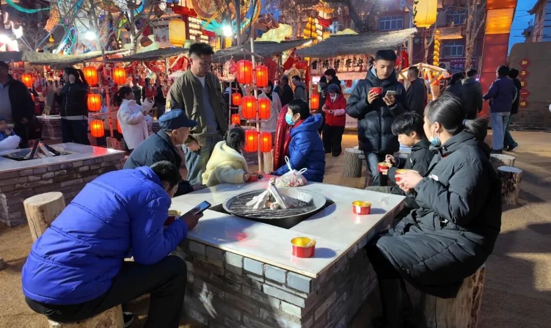 花灯选购区与美食区相邻,一边是流光溢彩的浪漫景象,一边是充满烟火气的温暖氛围。花灯选购区内,具有敦煌特色的造型花灯琳琅满目、独具匠心,不少市民游客驻足挑选,为元宵佳节增添了一份喜庆与诗意。美食区域香气扑鼻、人气高涨,各类特色小吃摊位整齐排列,现场还专门设置了休闲就餐区。整齐摆放的桌椅旁,炭火炉烧得正旺,不仅驱散了夜晚的寒冷,更烘托出团圆热闹的节日气氛。