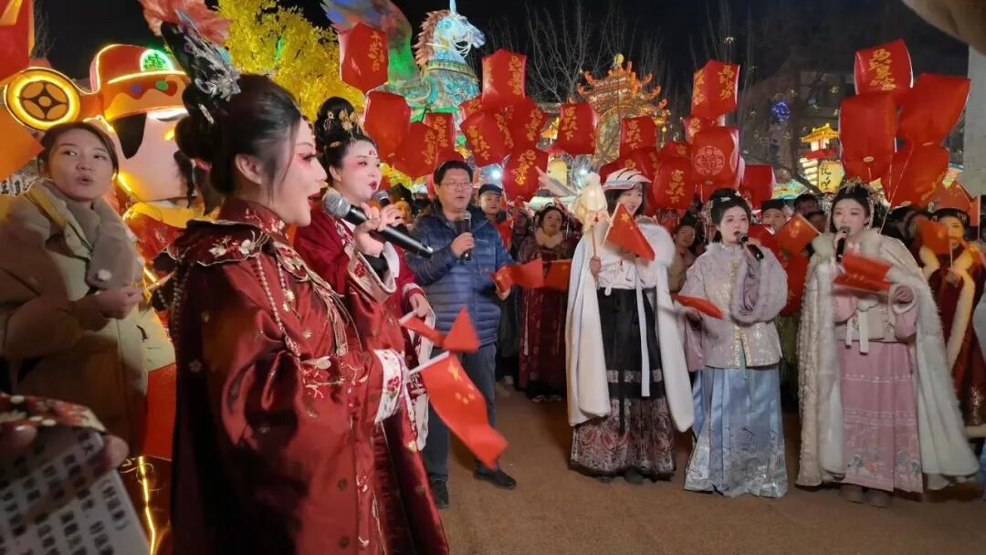 活动接近尾声时,“家国同祈·盛世欢歌”主题环节温馨开启。经典红歌的旋律响起,现场氛围瞬间被点燃,在场群众跟着旋律齐声高唱。大家用嘹亮的歌声传递对美好生活的向往,成为元宵之夜最动人的情感共鸣。