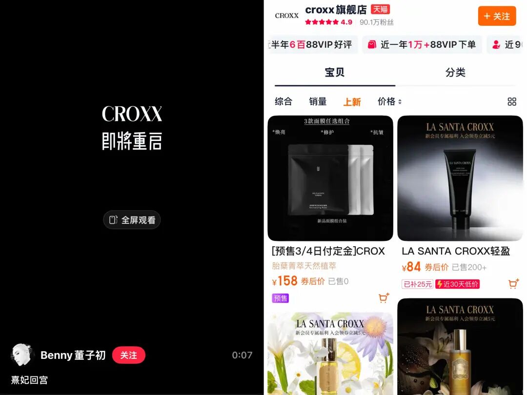 春日回暖,美妆圈也迎来新动态。美妆博主“Benny董子初”近期在社交平台宣布,其创立的美妆品牌CROXX将重启。目前,CROXX天猫旗舰店已上新面膜、洗面奶等产品并开启预售。