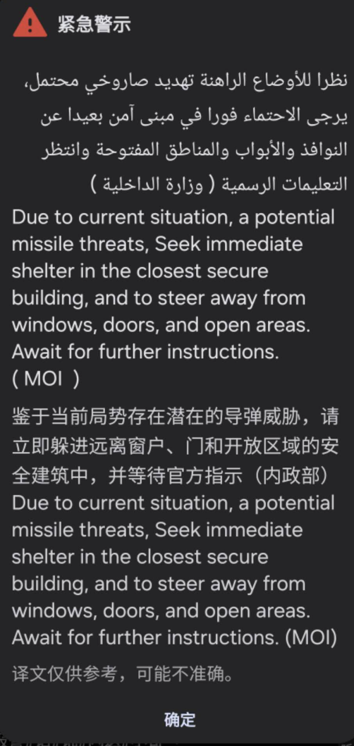 没过多久,阿布扎比、迪拜机场宣布临时关闭,原本该在回国途中安睡的旅客,此刻却只能在深夜酒店里,听着导弹拦截的爆炸声和反复响起的防空预警。