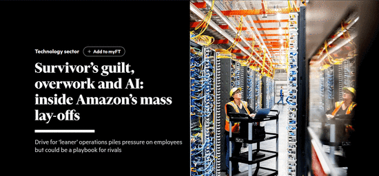 据《金融时报》报道,短短数月内,亚马逊裁掉了3万名员工。但更让留下的员工窒息的是,昔日同事的工位空了,他们的工作却全落到了自己肩上。