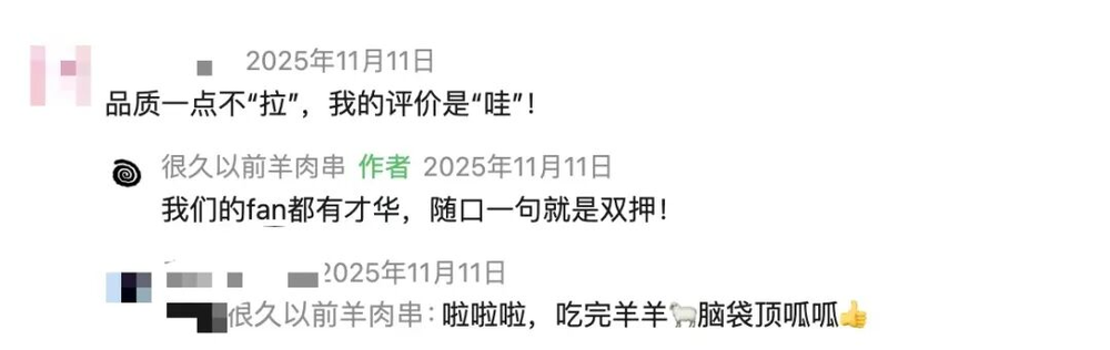 网友说:“品质一点不‘拉’,我的评价是‘哇’!”小编回复:“我们的fan都有才华,随口一句就是双押!”