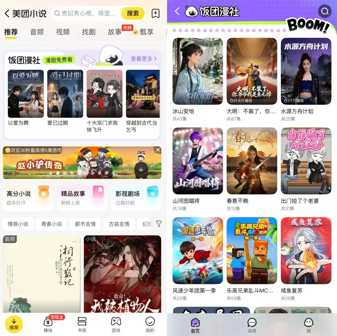 这并非偶然。2025年8月,美团整合短视频、游戏、小说部门,组建“内容方面军”,此次漫剧板块是其新式武器。AI漫剧结合有声书与漫画优势,制作成本低、沉浸感强,适合骑手接单间隙及用户餐后浏览,成为高性价比“时间填充剂”。