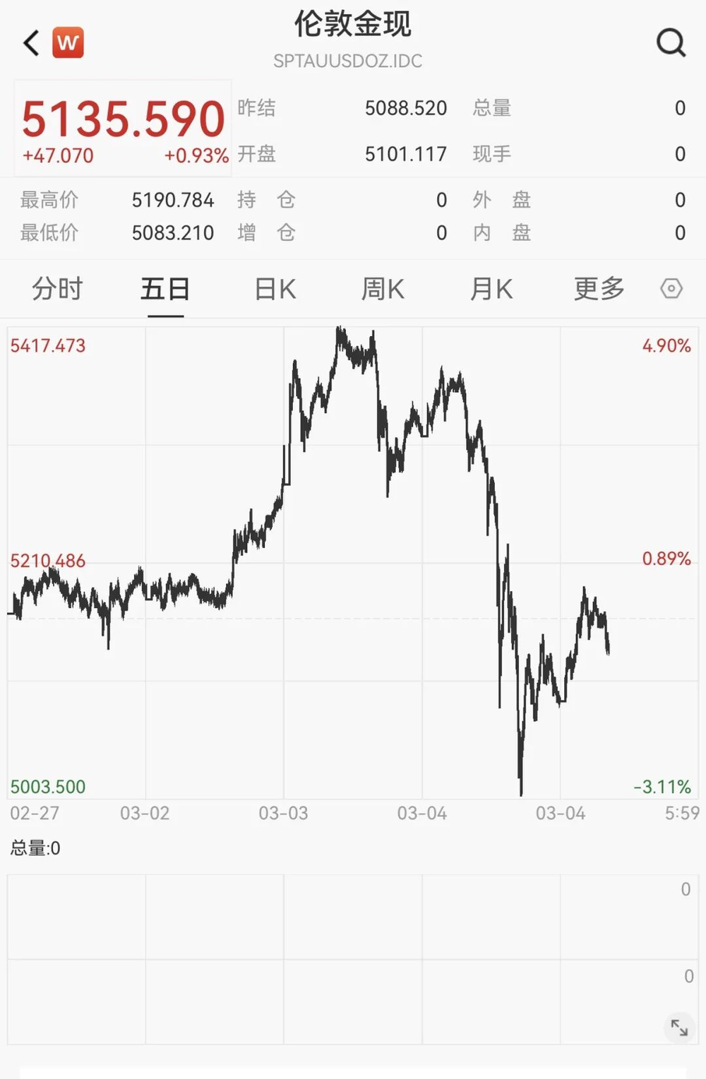 实际上,周二除了油价和美元走强外,全球主要股市、美国国债及其他政府债券,甚至一直被当作避险资产的黄金,都遭遇了大规模抛售。不过到了3月4日,黄金开盘后出现反弹,早上重新回到5100美元上方。