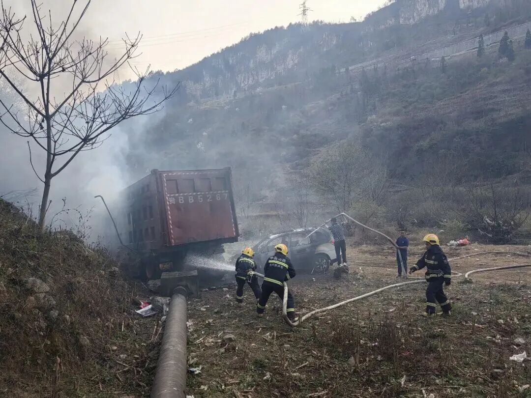 3月1日17时09分,贵州省黔西南州普安县某省道发生一起惊险交通事故。一辆货车不慎坠下30米高的陡坡,随后与其他车辆发生碰撞并引发起火,现场情况十分危急。