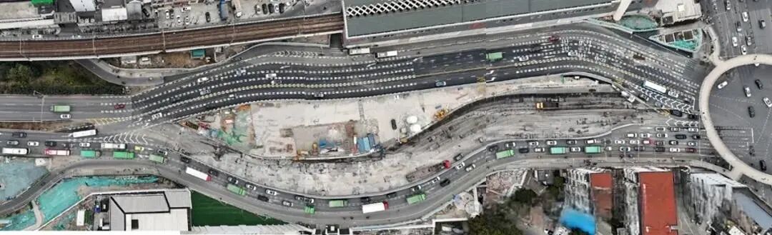 针对邻近既有线路变形控制、狭小场地作业效率及大规模土方外运三大难题,建设团队通过技术创新与科学管理逐一突破。为满足高架线路的严格变形要求,基坑钢支撑配备了智能伺服系统,可实现轴力自动调节与实时预警,有效保障施工安全。在有限作业空间内,团队通过优化工序与高效衔接,最大程度提升施工效率;同时多方协同打通土方外运环节,单日最高出土量达3050立方米,确保工程稳步推进。