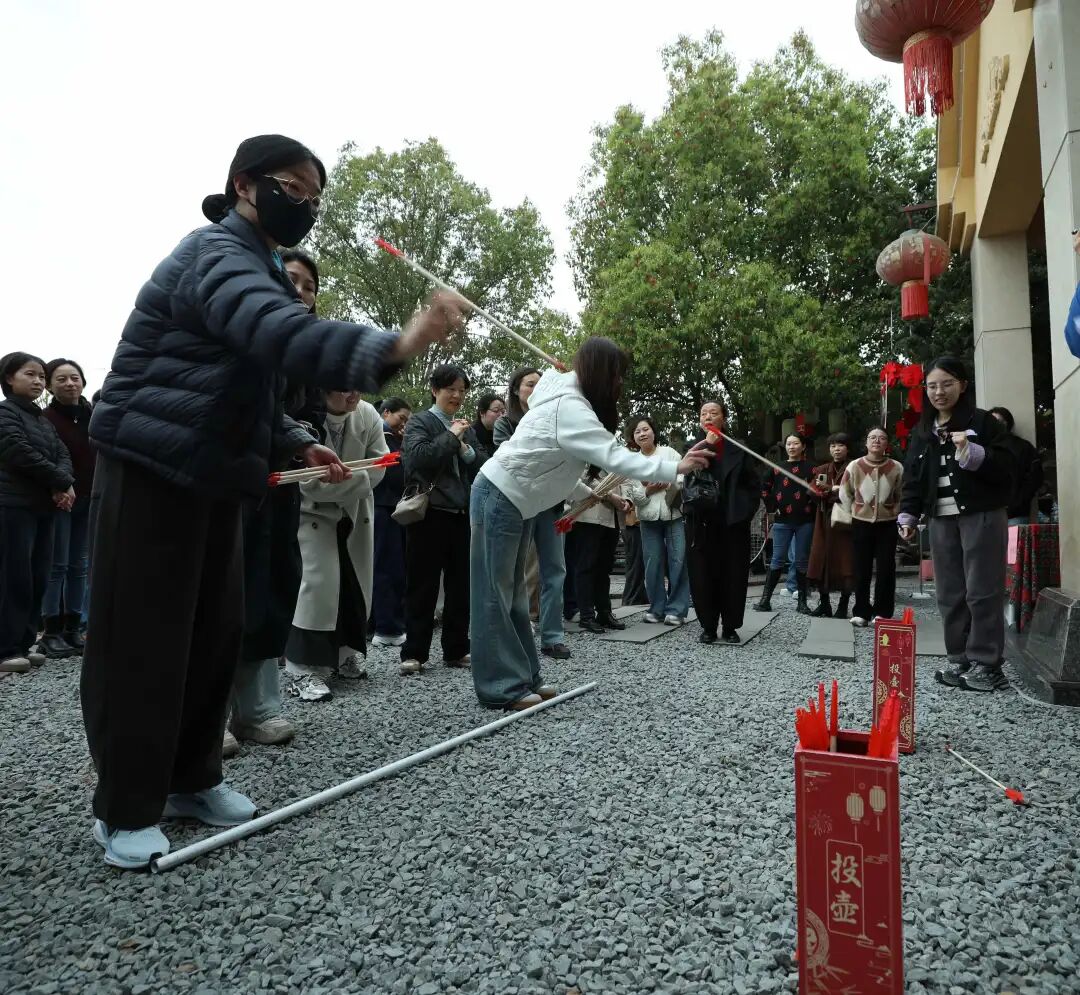 午后春光里,趣味游戏让现场欢声笑语不断,成为春日里最动人的旋律:古韵悠悠的投壶游戏中,大家凝神聚力、抬手投箭,在传统民俗里尽享乐趣;气球传送游戏里,大家默契配合、小心传递,信任在并肩间流转,情谊在协作中升温;寻“宝藏”环节中,大家循着线索,以耐心细致与协作配合,寻找春日里的惊喜。