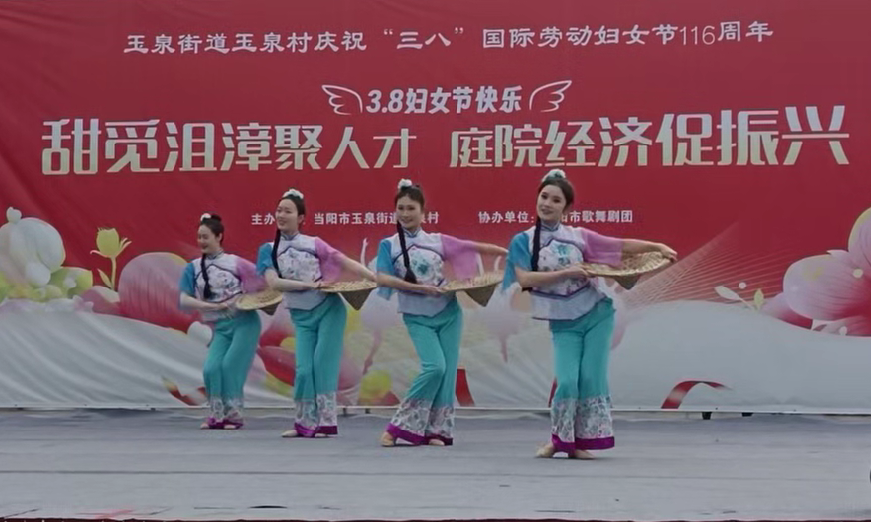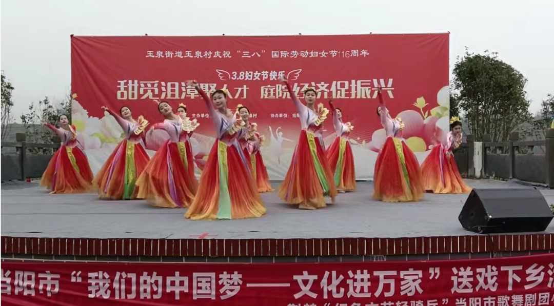3月6日,玉泉街道玉泉村举办纪念“三八”国际妇女节主题活动,500余名群众齐聚一堂共庆佳节。活动在铿锵的锣鼓声中拉开序幕,当阳市歌舞剧团与村文艺队携手献上歌舞、小品等多元节目,点燃了现场热情。活动现场表彰了3户村级“孝老爱亲”家庭,并为每一位到场的妇女同胞送上一盒丝巾作为节日礼物,将关怀与祝福传递到每位女性心中。