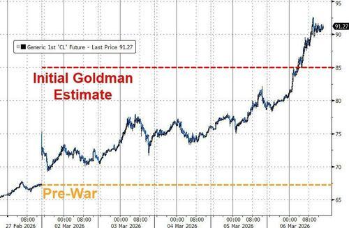 无独有偶,高盛周末也紧急调整报告,一改此前乐观预期,警告“若本周未出现解决方案迹象,油价下周可能突破100美元”,且上行价格风险正在加剧。该行表示,其判断基于以下四个因素: