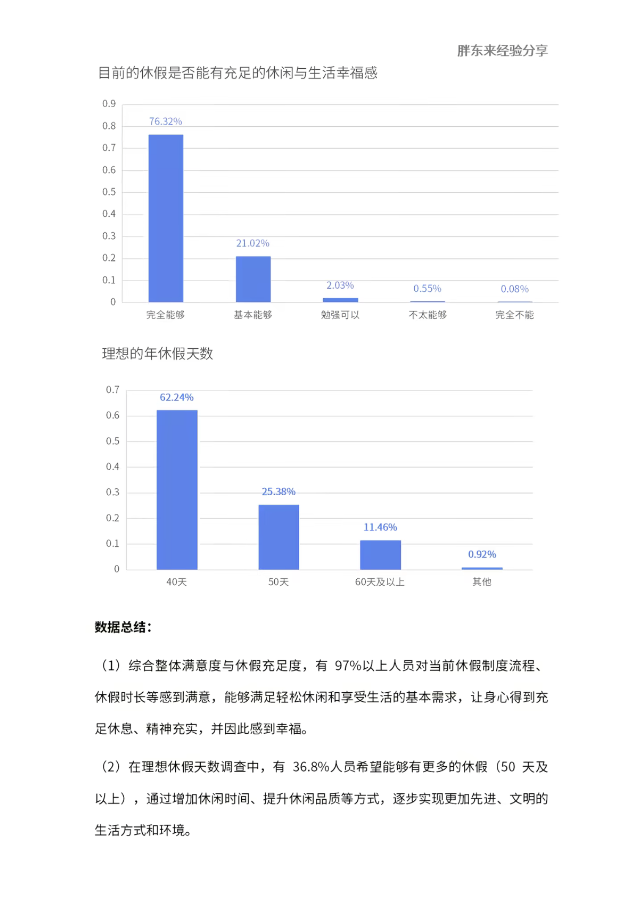 调研数据显示,员工对当前休假与工时制度满意度颇高:
