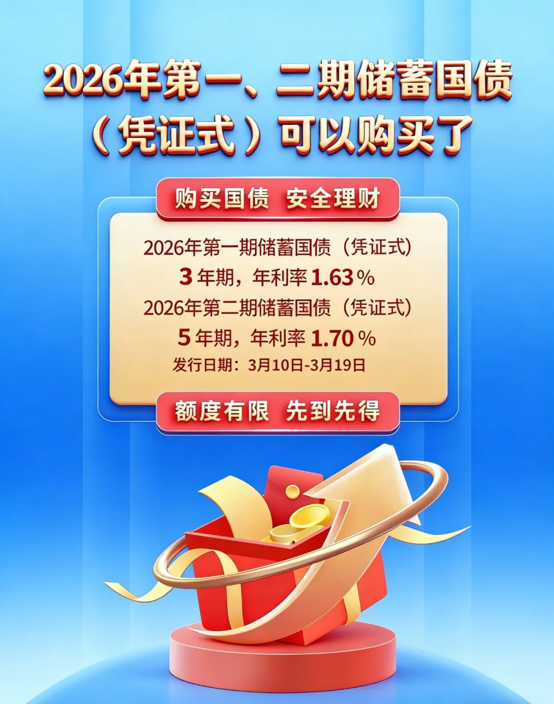 2026年第一、二期凭证式储蓄国债