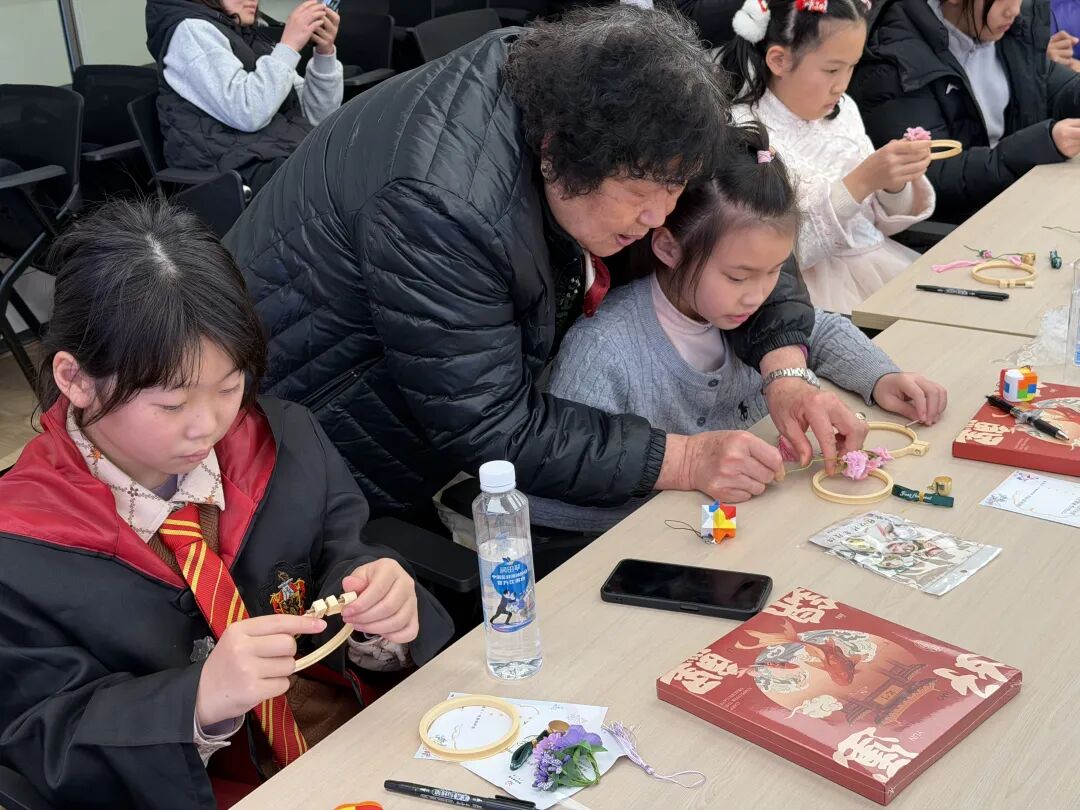 “亲子共创——守护风铃”环节把活动推向了高潮。每组家庭都拿到了风铃制作材料,家长和孩子围坐在一起,一起商量设计、分工合作。孩子们仔细挑选彩绳和装饰,家长们在一旁耐心帮忙,递工具、提建议,温馨又热闹。当风铃做好后,孩子们兴奋地举起作品摇晃,清脆的铃声回荡在现场。家长们也纷纷表示,这样的亲子活动特别有意义,不仅拉近了和孩子的距离,还让孩子感受到了家庭的温暖与支持。