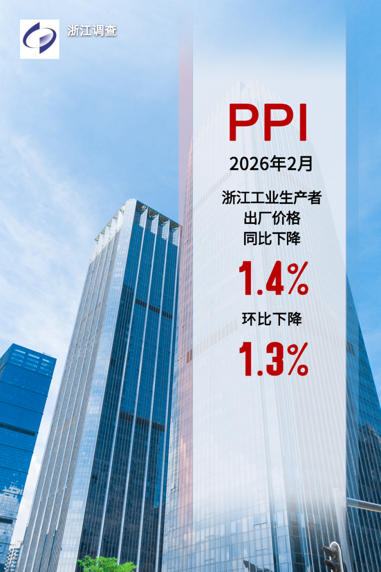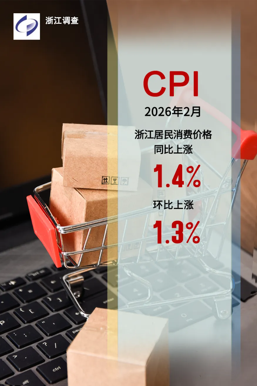 【数据发布】2026年2月浙江CPI同比上涨1.4% PPI同比下降1.4%