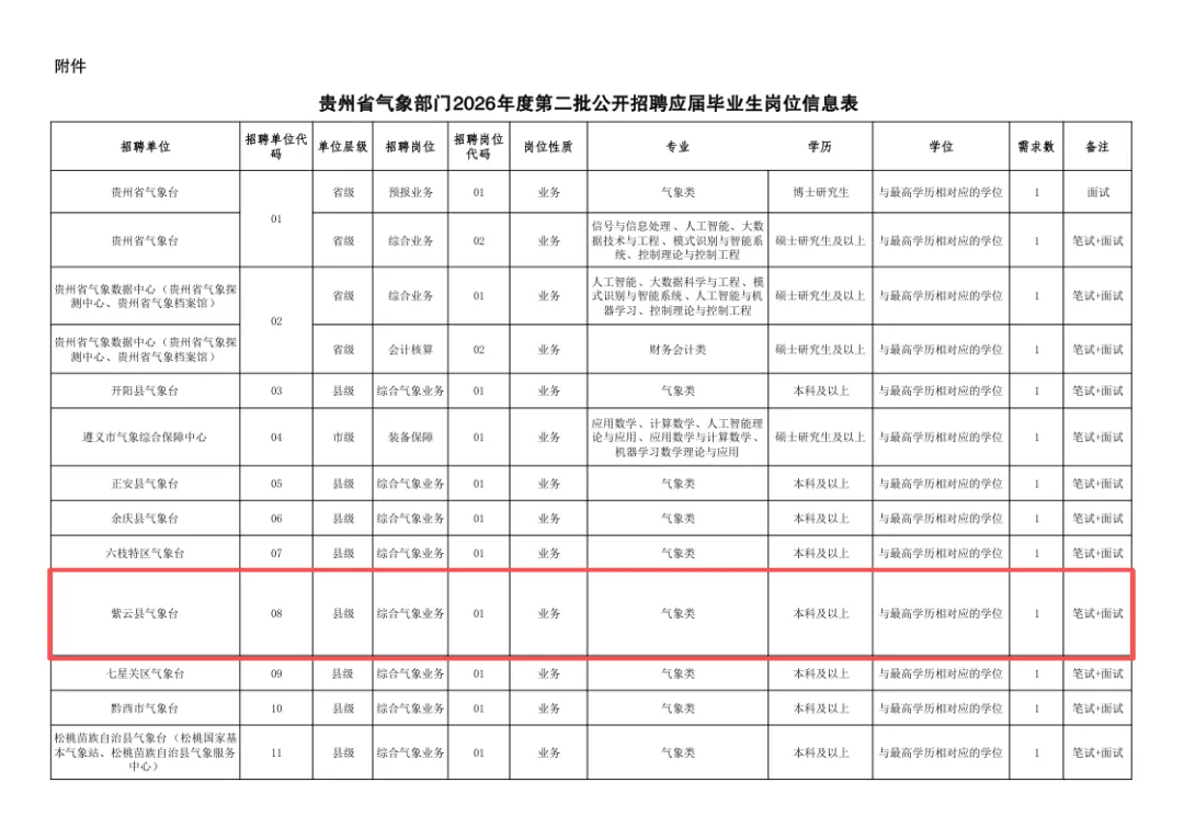 贵州省气象部门2026年面向应届毕业生公开招聘啦,本次共招聘22人,其中安顺地区有岗位可报考。