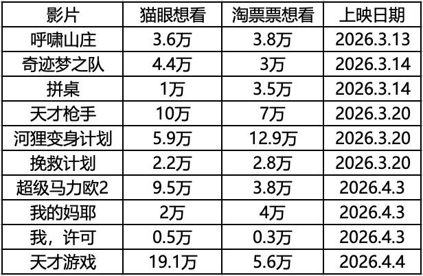 春节档虽已落幕,但其影响才刚开始显现。去年《哪吒2》凭借强大统治力和长尾效应,支撑了后春节档市场;而今年春节档整体能量不足,后春节档的延续性大打折扣,完全依赖新片表现。以下是3、4月即将上映的部分影片: