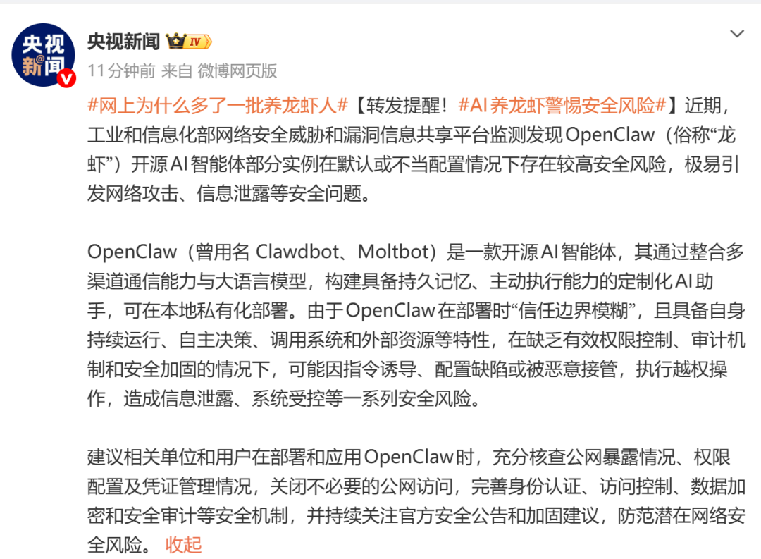 原标题:《“养龙虾”全网刷屏,官方最新提醒!》