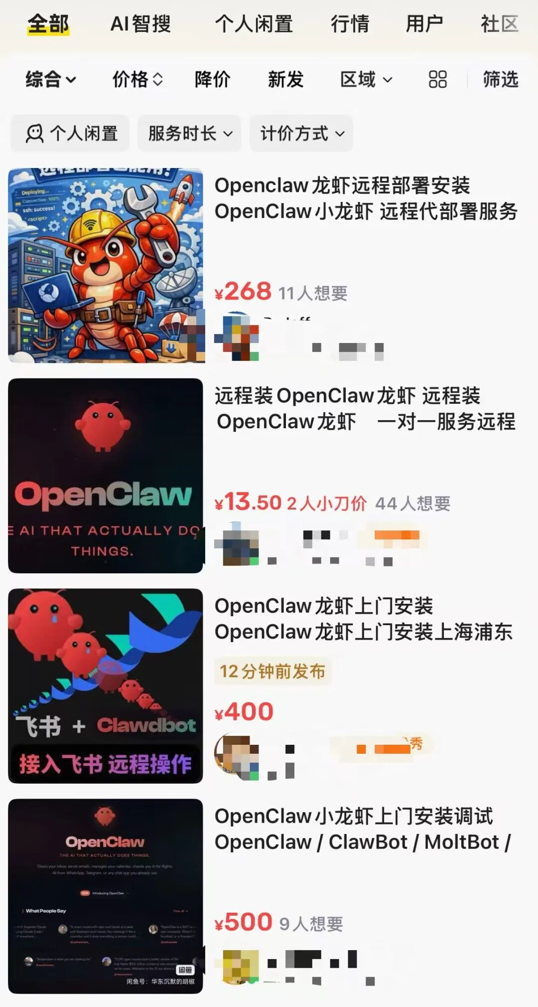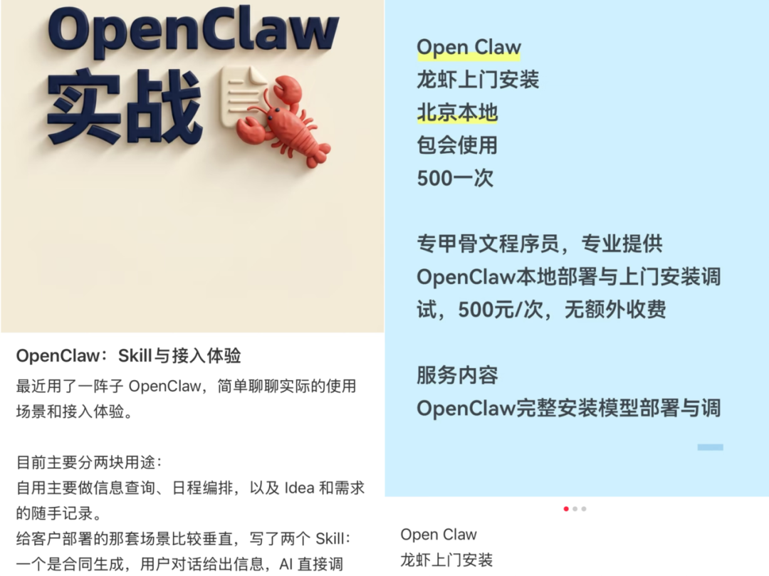 除程序员和爱好者外,一些从事电脑维修、网络维护的机构开始招募“OpenClaw上门安装人员”,将其集中在社群内统一派单。