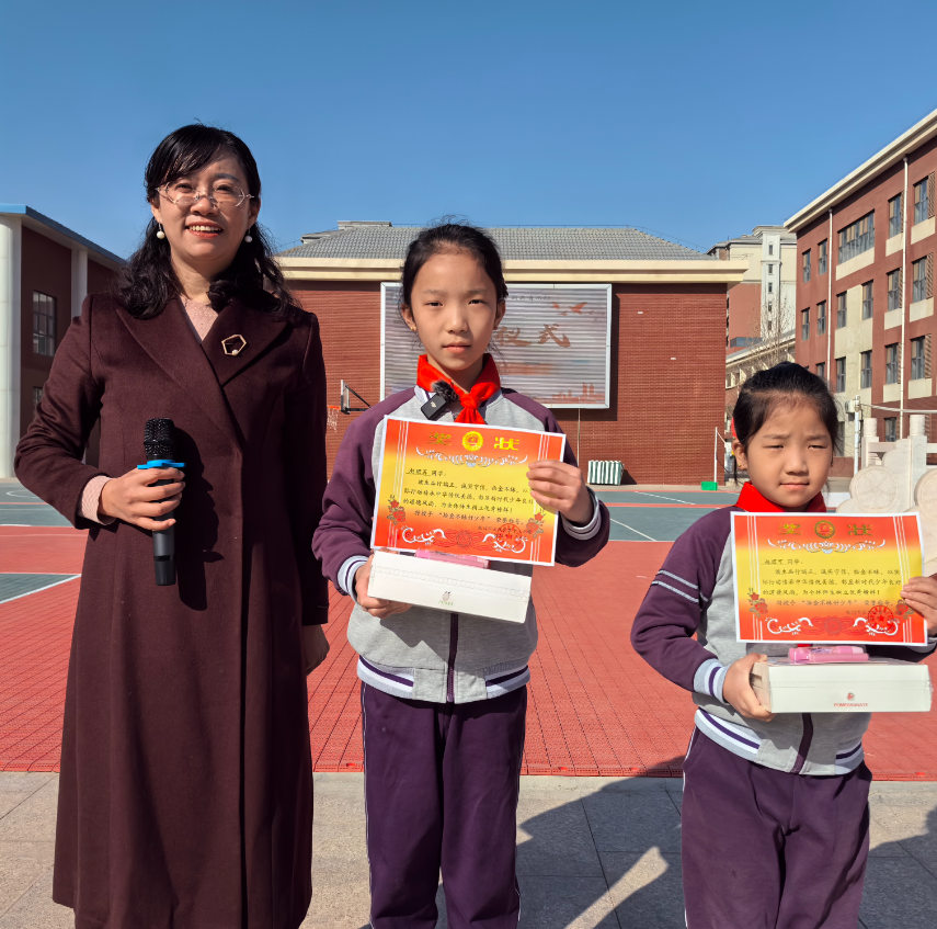 3月9日上午,在升旗仪式上,学校特地为赵珺可和赵珺苒同学颁发了奖状,表彰她们拾金不昧的优秀品质,并号召全体同学向她们学习,现场的孩子们深受感染。
