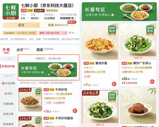 京东七鲜小厨全国门店推出“长辈专区” 打造适老化助餐服务新样板