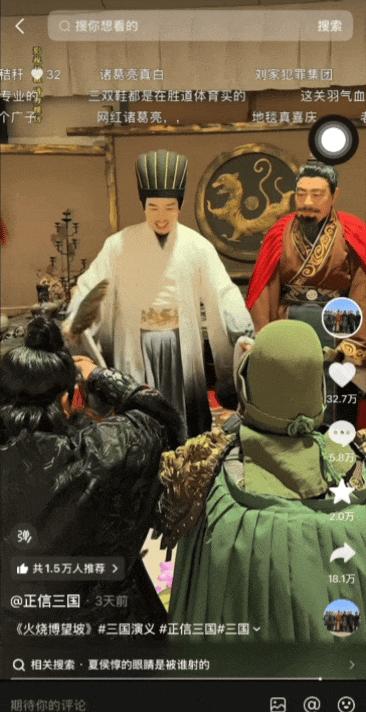 零门槛的情感共鸣,就是三国IP的流量密码。网友们看@正信三国的视频,不只是看视频本身,更是被激活了脑海中关于三国的记忆。