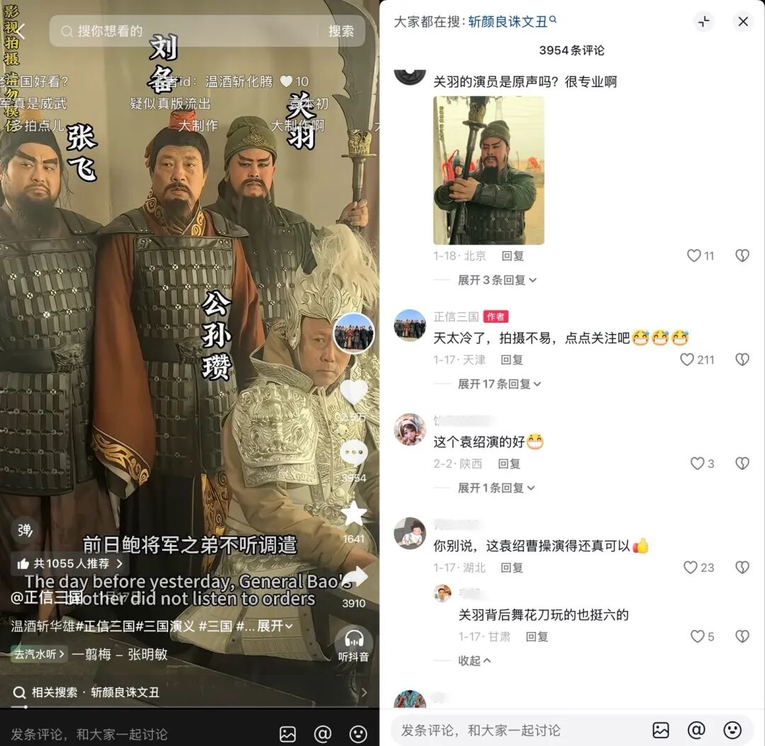 比起魔改剧情、AI换脸、狗血注水的同类内容,@正信三国的笨拙与真诚,反而更让人愿意看下去。