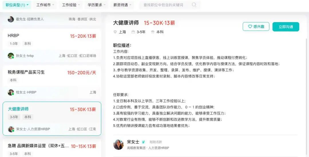 与此同时,高顿还在招聘大健康项目的讲师,该岗位同样采用线上授课的形式。