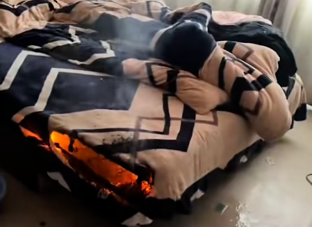 近日,安徽宿州一名男子家中突发意外,卧室顶灯起火并引燃了床上用品。
