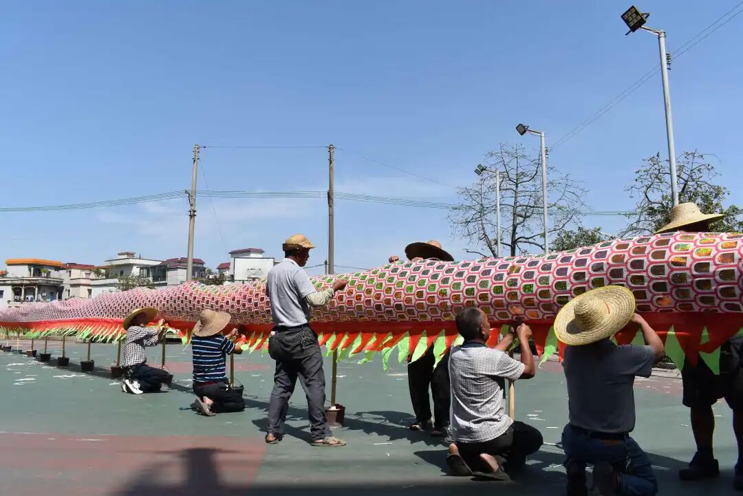 2025年,荷塘纱龙迎来新龙制作与点睛仪式。本土匠人秉持传统工艺,耗时半年精心雕琢,以竹为骨架、以纱为龙衣,手工贴制金鳞,重现传统纱龙的独特神韵。点睛仪式上,新龙仿佛被赋予生命般苏醒,港澳乡亲纷纷返乡见证这一时刻,让中断多年的纱龙制作与展演篇章重新开启。