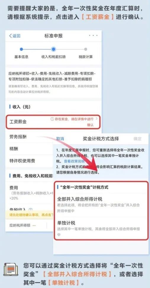 值得注意的是,单独计税和合并计税两种方式会影响最终是补税还是退税,大家可以根据自身情况选择。