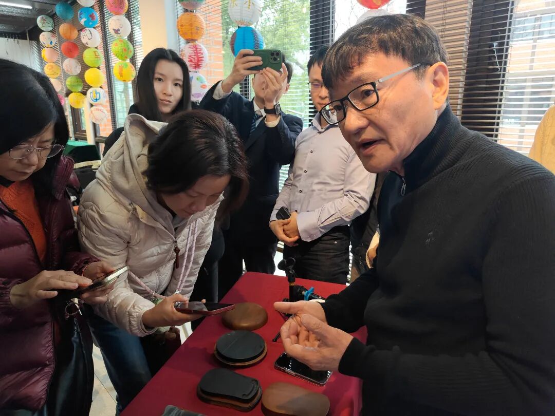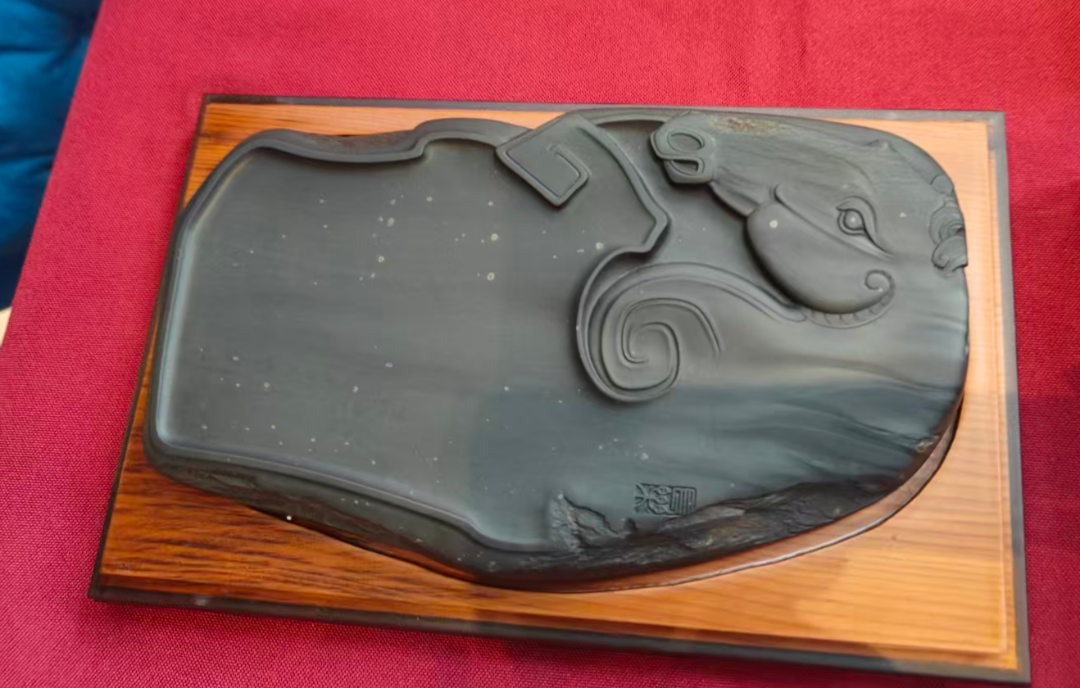 钱学锋在讲解过程中,一边为大家介绍相关知识,一边通过视频和图片展示歙砚与歙石的精美之处。他提到,自己经常前往龙尾山“淘”砚石和歙砚,黄庭坚诗中所描绘的当地风光、砚石的石品纹理、采石与制砚的习俗等场景,至今依然保留着。他还现场展示了几款砚台和砚石,让大家能够近距离仔细品鉴。
